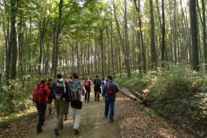 (piros sáv) jelzésen továbbra is északkeleti irányban folytatódik, bal kéz felé helyenként gyönyörű kilátás nyílik az alattunk elterülő tájra. Újabb két km után egy „U” kanyarnál letér a széles útról a
